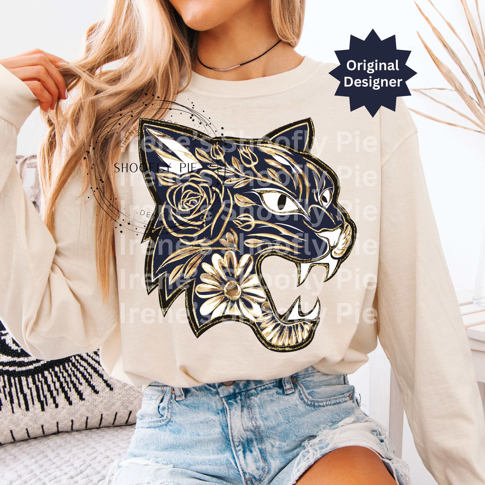 Bobcat Navy and Gold Png, Bobcat Mascot Png, Floral Bobcat T-shirt Design