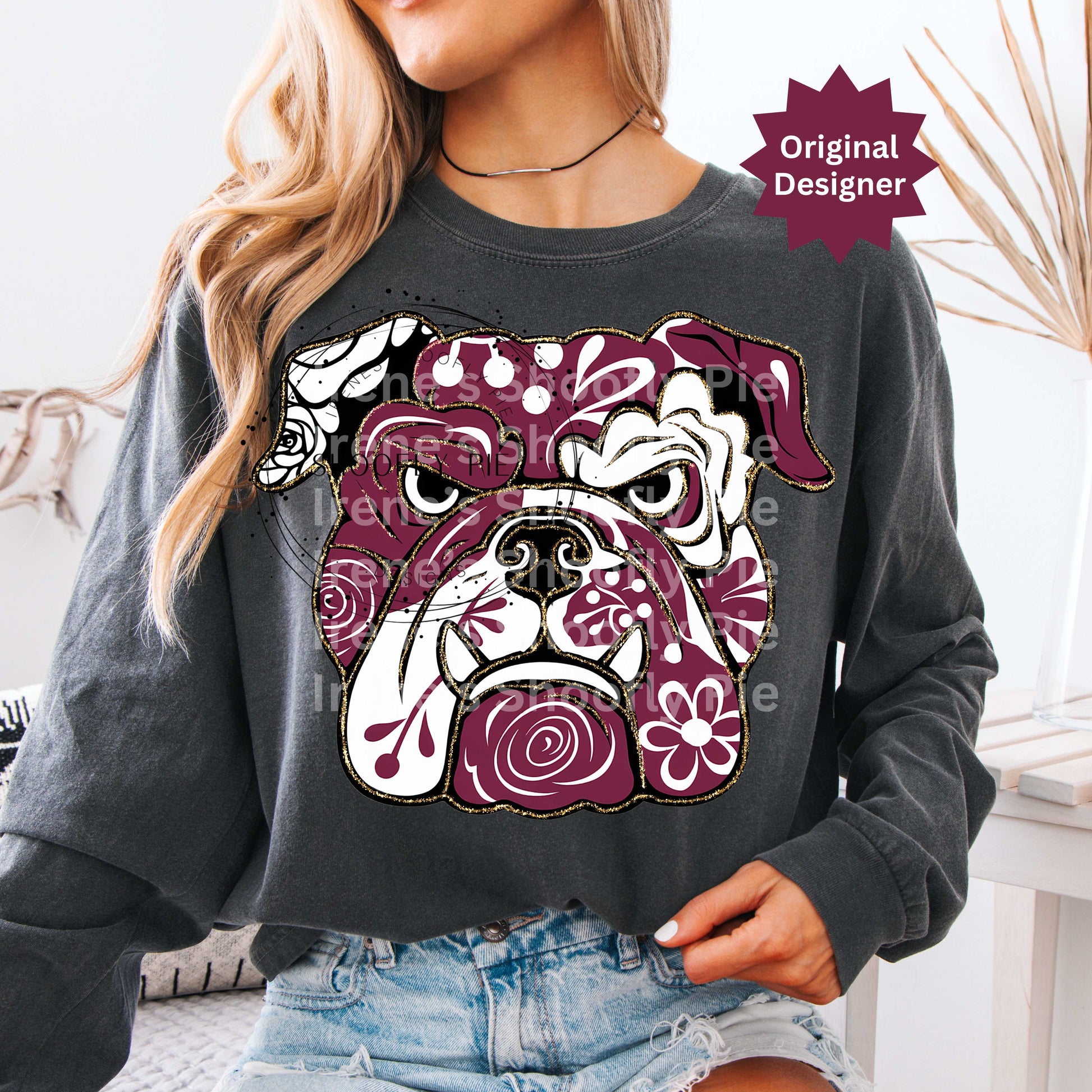 Bulldog Game Day Png, Floral Maroon Bulldog Png