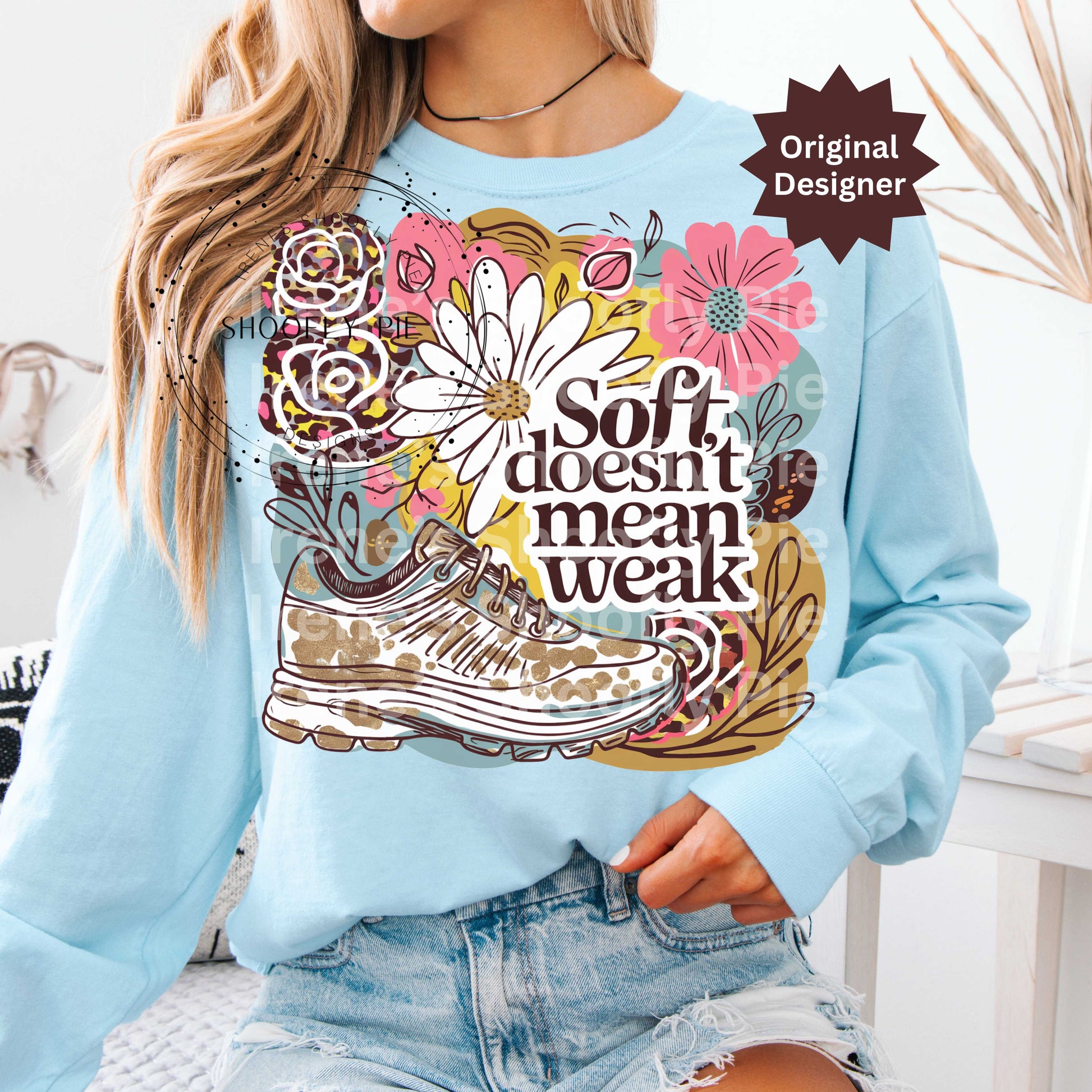 Runner T-shirt PNG, Floral Runner Png, Soft Doesn't Mean Weak PNG