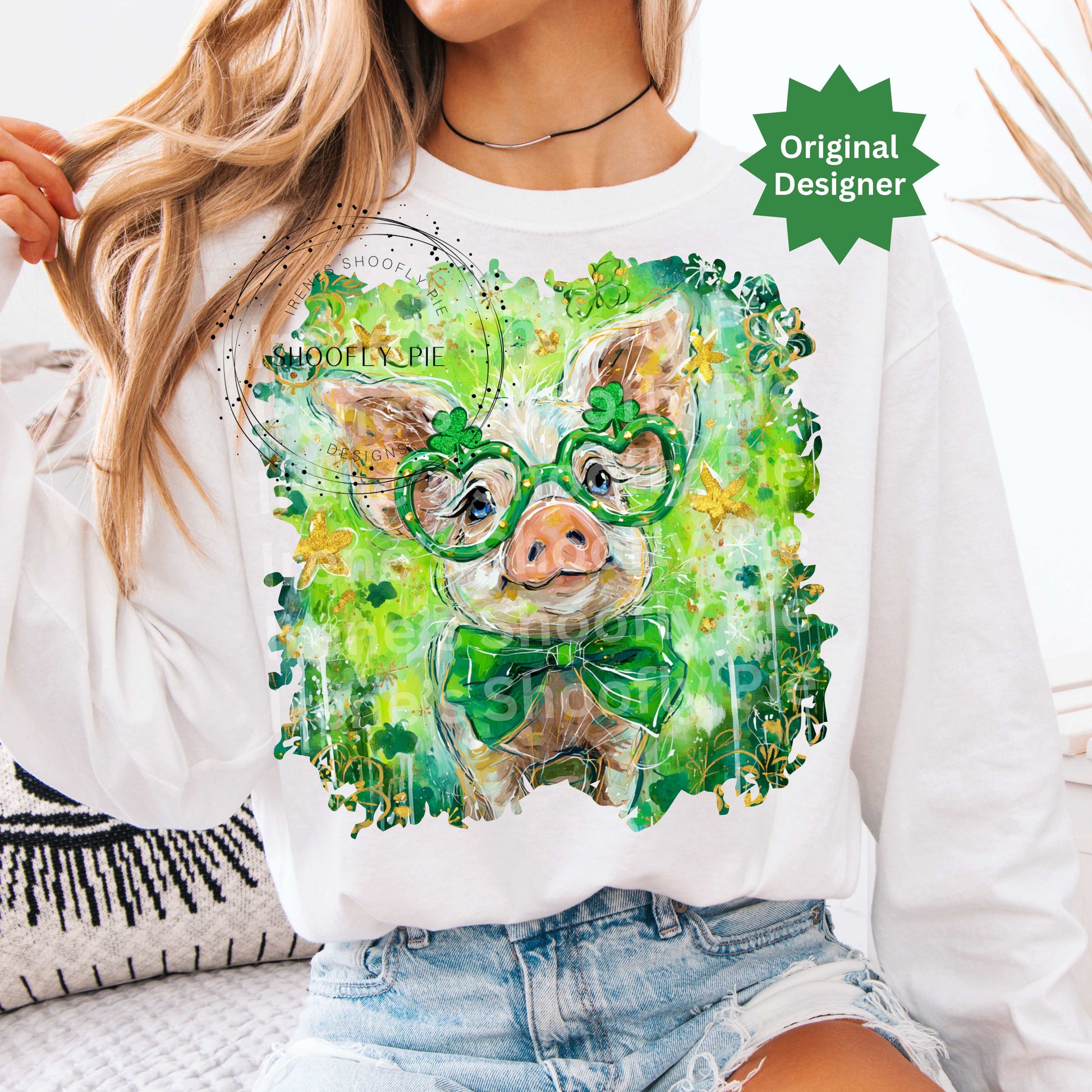 St. Patrick's Day Pig PNG, Preppy Hand Painted St. Paddy's Day Pig PNG