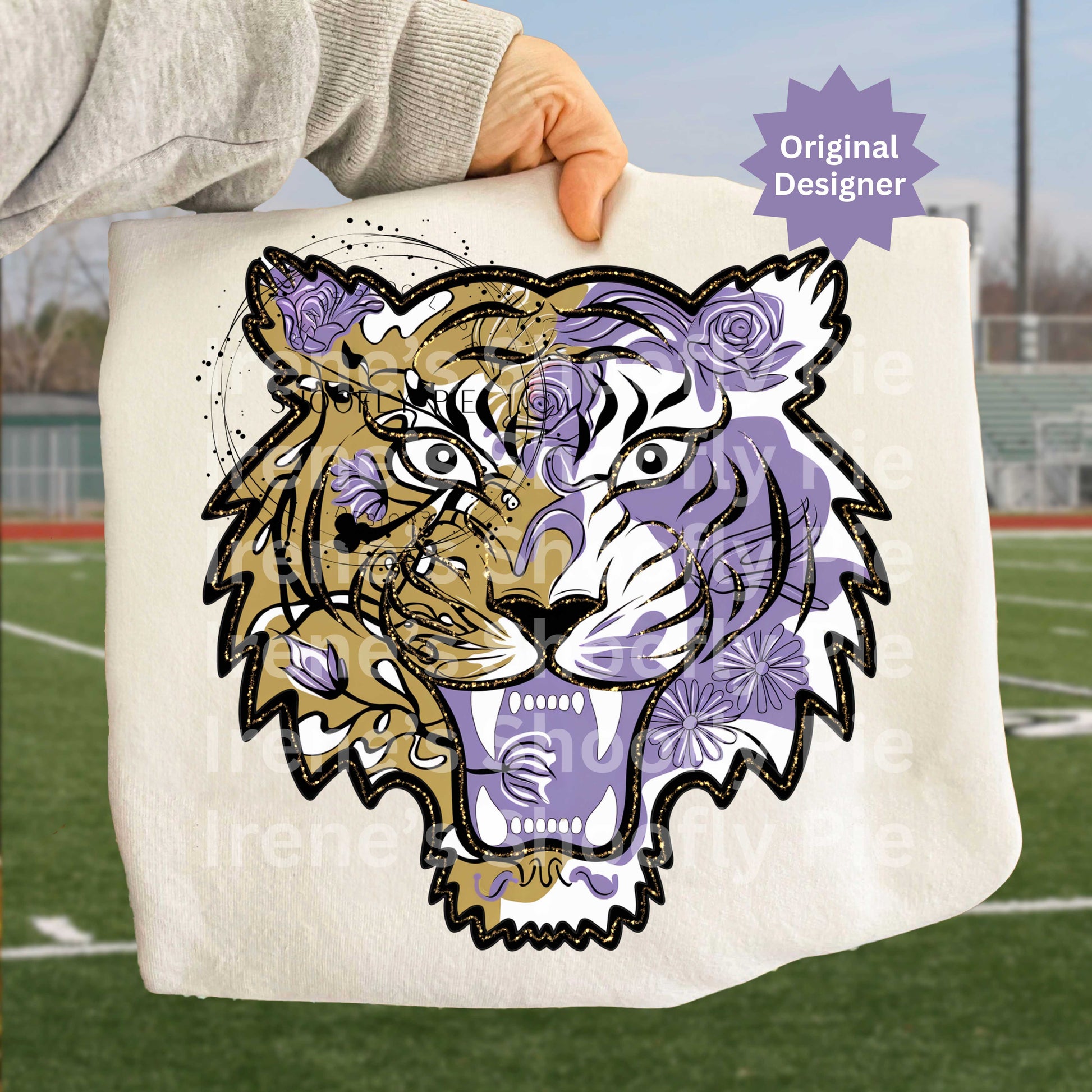 Tiger Mascot Purple and Gold PNG, Floral Tiger PNG, School Mascot PNG